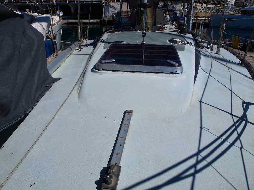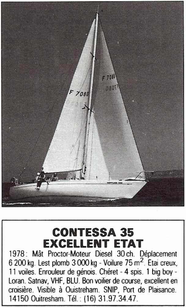 From the 1950 to the 1980 these thirty years are named the "Stephens Era" on the sailing races field for the absolute freehold that boats designed by him had in every race, including the America's Cup. One of those vessels was the Palynodie, own by businessman and politician Gaston Defferre from Marseille, France, who was also for a long period the major of that town. The Palynodie was surprisingly constant in winning every regatta she attended to. In those days the French nautical magazine par excellence was the "Neptune Nautisme" whose editorial team was composed by such sailors as Alain Gliksman, Michel Malinovski and others, all friends of Eric Tabarly or Bernard Moitessier and today historic names of the French Yachting. The magazine's owner was Henry de Constantin de Chateauneuf and he was willing to defy Defferre on his own Mediterranean waters. Pushed by his editors they started looking for a suitable boat and the research was not long! In 1974 the One Top Cup was won by a British built new boat, the Contessa 35 prototype, called "Gumboots" and designed by a then young an unkown Doug Peterson. Her builder, Jeremy Rogers, was also at the tiller and though a young man too he no longer needed any introduction: he was already building a range of boats, mainly designed by... Olin Stephens! And the quality of his buildings was already amply recognised. Michel Malinovski had already tested the standard model and was really impressed by her balance between sailing performances and cruising comfort, by the building quality and the seriousnes of her builder. The development of the new boat lasted two years and Malinovski himself worket at the yard for a long while. On board the boat there is still the sail bag in which he stored the tools to repair sails. In 1977 was at last launched the "Neptune One", with which name de Constantin jointly honoured the Sea god, its own magazine and the British origins of the boat. The hull lines of this boat show a deep V forward and become fairly flat around the keel, becoming more radiused aft at the stern: thus the route stability is improved without penalties from the I.O.R. rating. The topsides have a light tumblehome, i.e. they slightly reduce the beam at deck level. On deck, the cabin-roof profile dilutes forward on the deck itself, following the dominant style until the end of the Eighties. The two spreaders mast, one more and taller than the standard and the lead keel, of trapeizodal lines and deeper that the standard (2,05 m. Against 1,93 m.) are the bigger differences, together with a rudder of increased surface compared to a standard Contessa 35 and show Malinovski priorities when thinking a fast vessel. The deck hard-ware follows the original lay-out but is organised with bigger and more powerful pieces. The builder used polyester isophtalic resin (then a novelty) and prepared a really sturdy structure with floors, ribbands and stringers directly laminated to the hull without counter moulds. The Neptune One is thus a real ocean cruiser racer ready for any sailing program. Naturally enough she was published once at least on the Neptune Nautisme magazine cover. Once Henri de Constantin reached his goal, arriving before the Palynodie three times in real time (in 1978, 1979 and 1983) he used the boat for cruising and log distance racing, as in the 1979 Marseille – Sidi Bou Said. In 1992 he sold the boat to her second and present owner. He is an old French submarine officer and sailed single handed initially between Brittany, Ireland and England, two times including the Azores. In 2010 he sails to the Baltic Sea, to Norway, Northern Sea and the Azores, crossing the Gibraltar Strait and arriving to Barcelona that becomes Neptune One's home port. Hence he sails on short cruises around the Med. Today, Today being well in his Eighties he considers that the vessel deserves a younger owner who understand the sturdines, the frugality and austerity of an uncompromised ocean vessel, full of history and in very good conditions.
