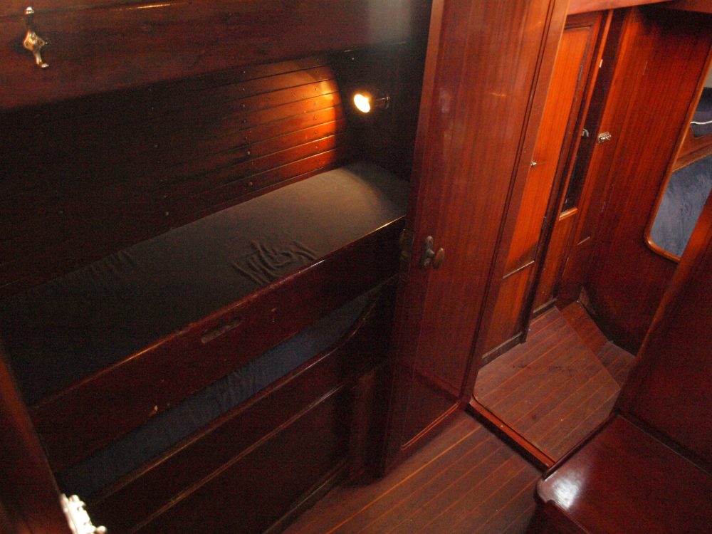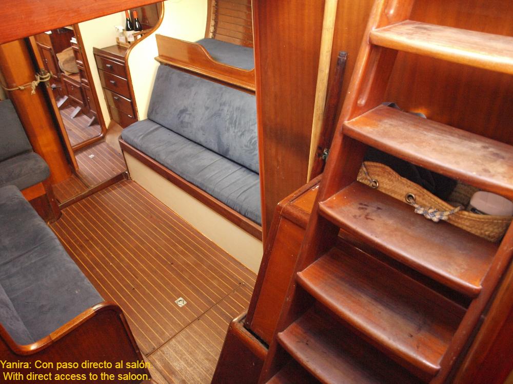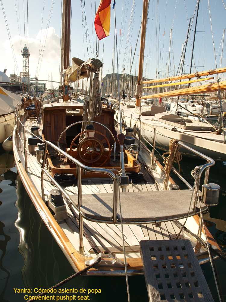 Ragnar Appelgren (1909-1993) was a Norwegian cosmetics industrialist and passionate sailor. In 1953 he commissioned a large sailing yacht from Bjarne Aas. It was the largest boat Aas had ever designed. It was a 12-metre yacht of the then recent Cruiser-Racer class (Int. C-R), which was inspired by the Metric Formula (IR), but with dimensions that were more geared to offshore sailing (greater freeboard, deeper draft, more displacement, etc.). From the metric boats, the wide overhangs were maintained, which give the CR boats an elegance that stands out among all the classics. The new ship was built in Fredrikstad (near the Swedish border) and was the largest ship built by the yard, which belonged to Aas himself, up to that date. Before the Second World War, Bjarne Aas had made a name for himself with his 6m. IR, like Olin Stephens, and like him he always felt linked to the pure lines of International Rule. He even won a gold medal at the Olympic Games in Paris in 1924, precisely in the 6 IR class. For all these reasons, the design of Ingeborg, as Appelgren's boat was called in homage to his wife and daughter, shows such marked and elegant features, which also give it an essential reserve of buoyancy for bad weather. The interior has a very cosy and sporty style at the same time. Entering from the stern, there is the navigation room, with the engine panel and a transverse bulkhead through which the main cabin is accessed and which is shaped in such a way that it constitutes a chart table by the beam. The owner’s cabin occupies the full beam and has a dedicated head. A door on the port side gives access to the ship's second vestibule, with the so called ocean companionway (to the side and amidships) and from there to the saloon, which is spacious and airy. The convertible sofas are each equipped with a quarter berth, and the access to the galley has a second head on the port side. The galley takes up the entire beam forward and has ample work space. Further forward in the forepeak, a curtain separates the guest cabin from the anchor locker. Appelgren sailed Ingeborg in the North Sea for three years until 1957, winning many races and doing family cruises. From then on, he wanted to establish his home port in Palma de Mallorca, but after another three years, in 1960, he sold the Ingeborg to Manuel Giró Minguella, a Spanish industrialist, famous for being the owner of the Ossa motorbike brand. Manuel Giró renamed her Yanira, one of the 50 Nereids, Mediterranean nymphs who, according to the ancient Greeks, looked after sailors, and enjoyed her for ten years until he sold her to a syndicate of 10 friends. Later, this fast sailing ship was owned by the families of Luis Gil de Biedma and Federico García Planas, until the latter became the sole owner in 1983. In 2013, the boat changed ownership again and her new owner underwent an extensive restoration cycle, with new mast and sails, new caulking and paint of the hull, refit of the chainplates and replacement of some planks and frames, as well as complete renovation of the deck. Since then the Yanira has participated in numerous regattas with impressive results (including seven King's Cups - six in a row, several times champion in the Puig Vela Clàssica; several victories in Les Voiles de Saint Tropez and even in the General Cruiser IR of the Alfonso XIII Barcelona-Menorca trophy which she won in 2000 and 2005 against modern boats). At the same time, her owner has enjoyed magnificent cruising trips with his family, sailing all over the Mediterranean. We can therefore affirm that the Yanira perfectly fulfils the two programmes that her design formula had envisaged and is in perfect structural condition to continue to do so with a new owner.